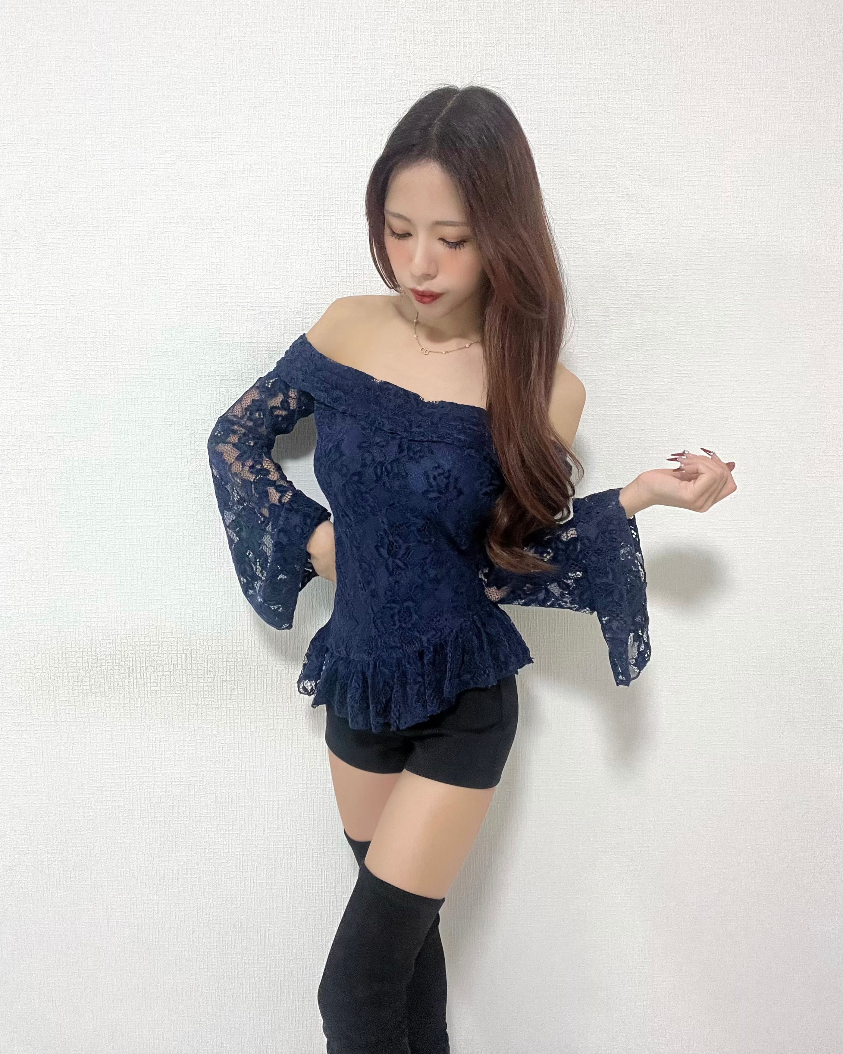 オフショル総レース/ハイウエストパンツset up/5031