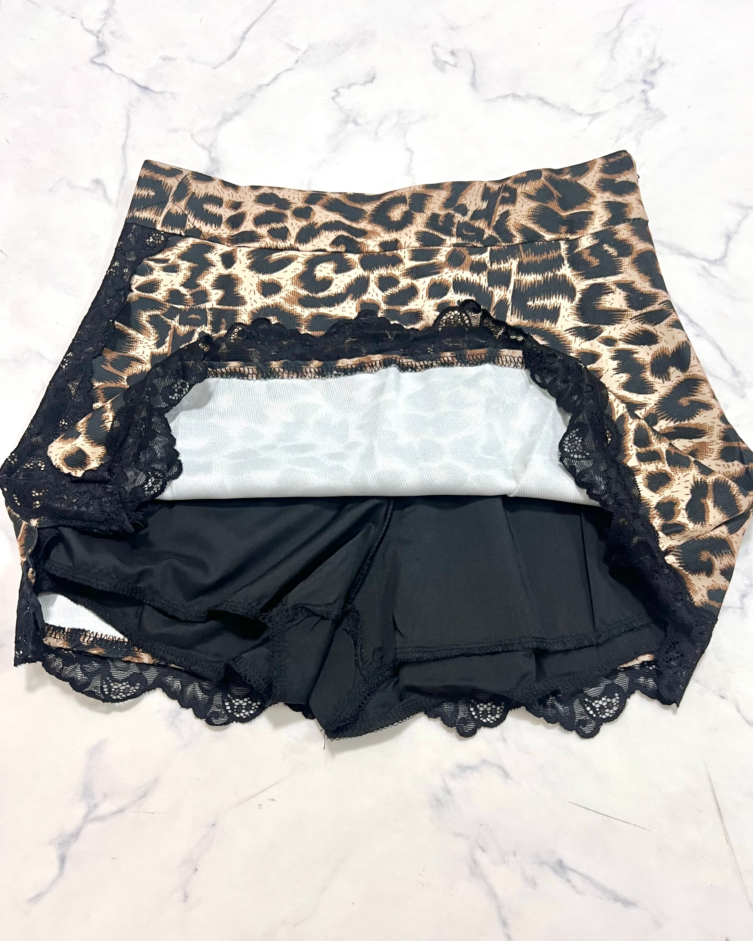 ベロアブラウス/レースレオパードスカートset up/5049