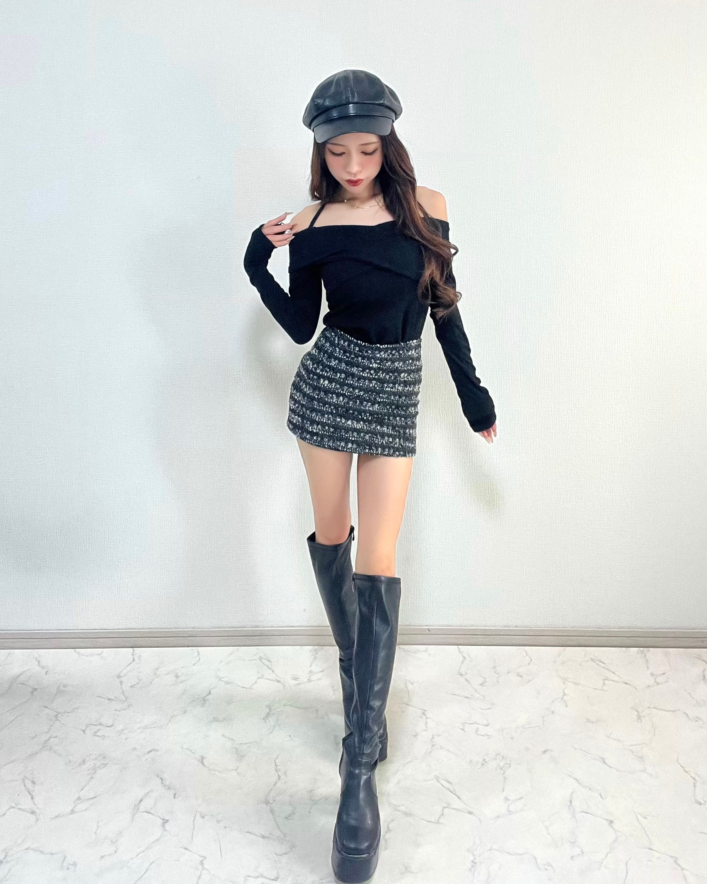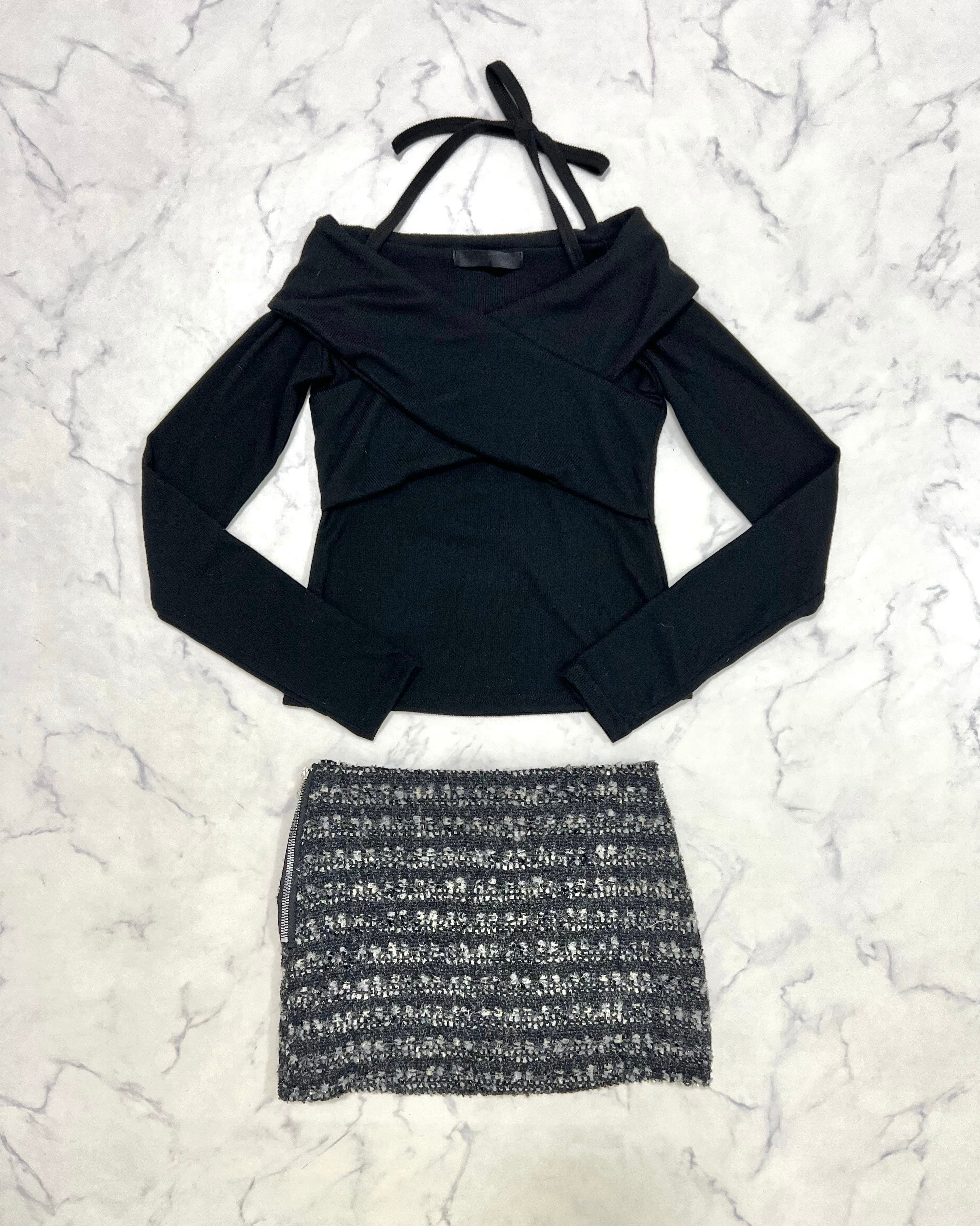 ︎【 カシュクールニット / ツイードミニスカートset up 】