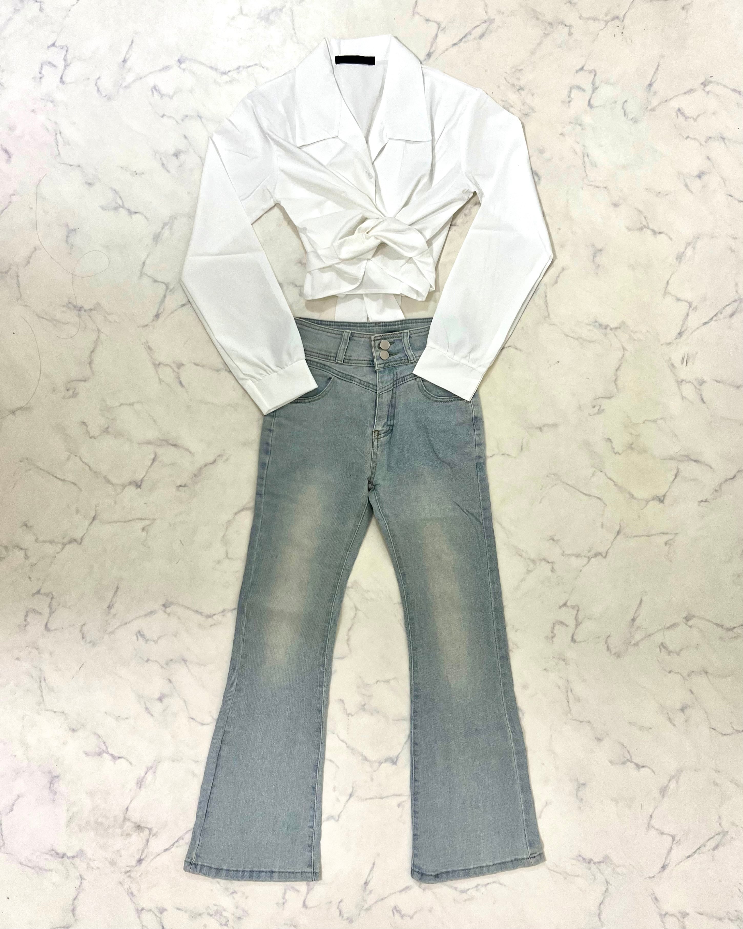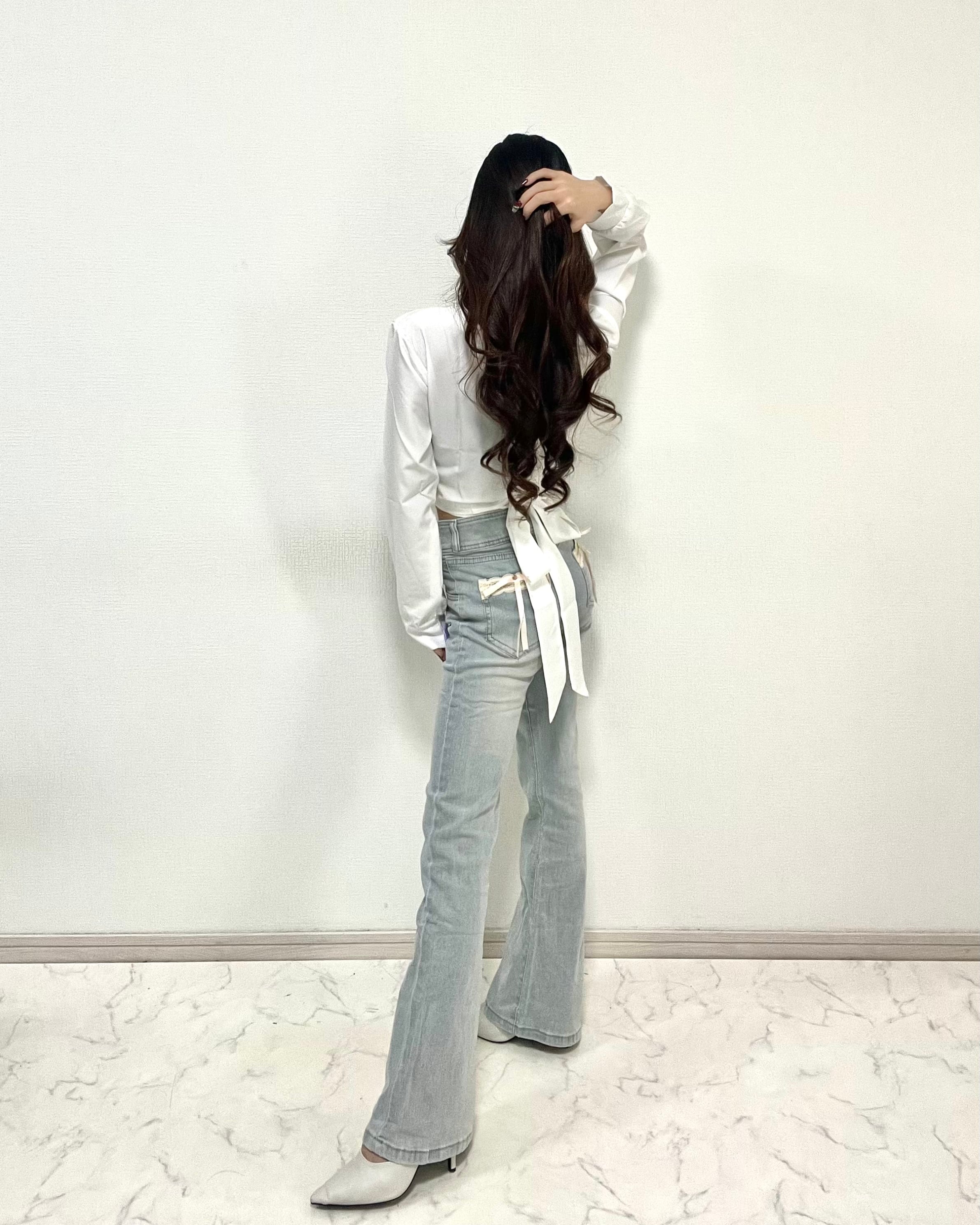 ︎【 ショートシャツ / バックリボンフレアset up 】